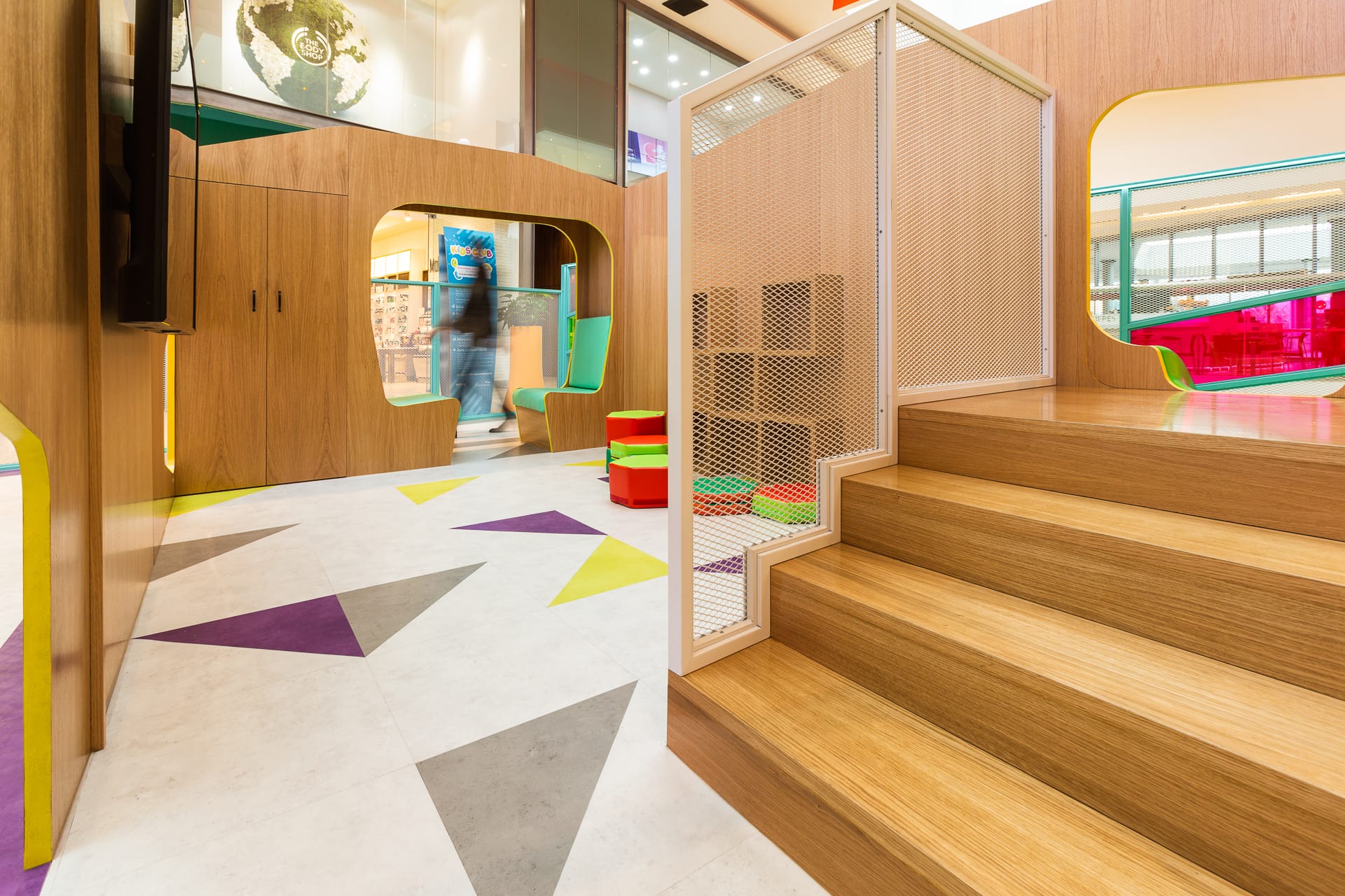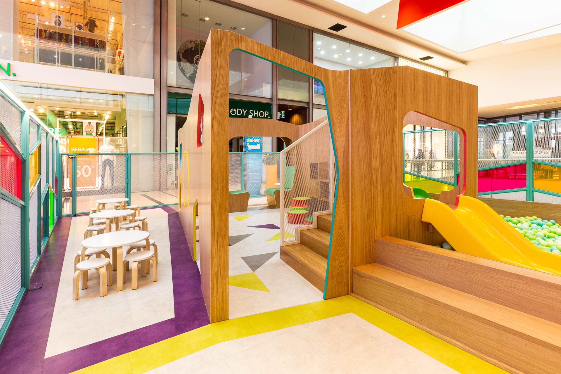 El proyecto consiste en un espacio infantil controlado por monitores en el Centro comercial Puerto Venecia en Zaragoza.
